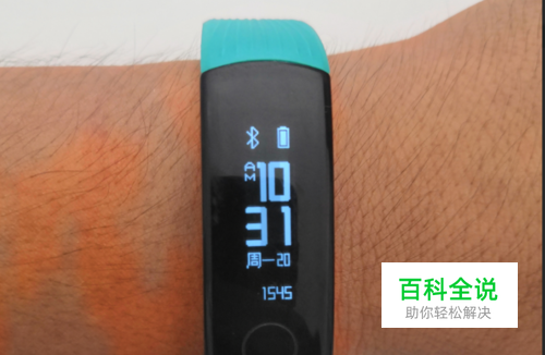 我们通过抬起手腕或触摸荣耀手环3的触摸键,将手环的屏幕唤醒点亮,显示到时间状态。