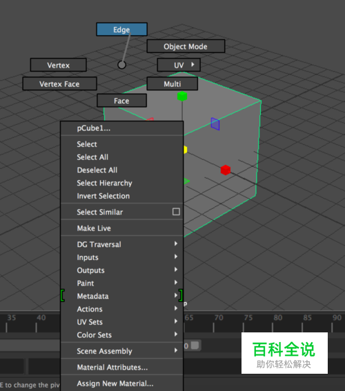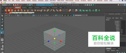 首先建立一个多边形(polygon)模型,以立方体(cube)为例。可以在工具栏上直接点击立方体创建,也可以在“创建”下拉菜单下创建多边形。 步骤:“创建-多边形-立方体” 【Creat-Polygon Primitives-Cube】