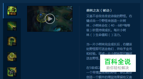 W技能是生成一个草丛,艾翁在草丛中的攻击方式会变成远程攻击,草丛的存在的时间是30秒,这个技能非常适合隐藏自己,让敌人失去视野