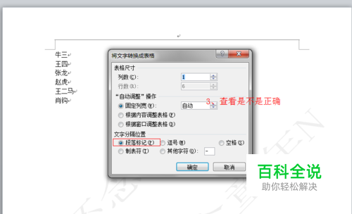 小编随意起的一些名字,给大家演示,选中起好的名字,点表格,文本转换成表格