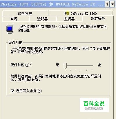 四格:禁用光标和图象加速程序,使用这一设置纠正鼠标指针的问题或纠正损坏的图像的问题。全:启用全部加速功能,如果计算机没有问题,就请使用此设置(推荐)