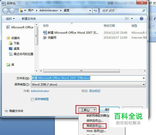 在弹出的对话框中,点击“工具”,在下拉菜单中,选择“常规选项”