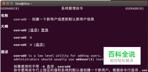 在Linux中新增与删除用户可以使用命令:Useradd 我们先使用man命令理解一下Useradd的用法