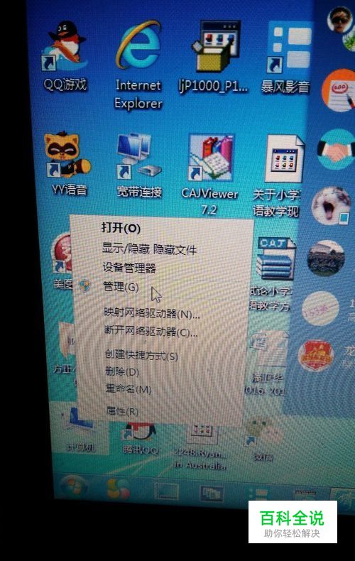 开机,在电脑上找到我的我的电脑,window7以上系统找计算机,右键,找到管理,左击进入。