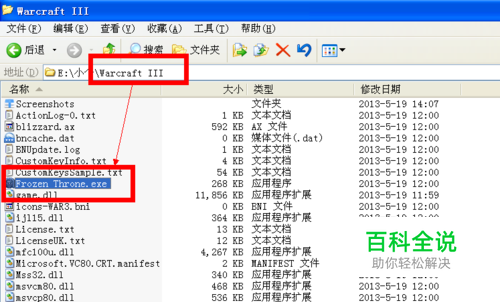 找到安装有魔兽争霸3文件的根目录。在该目录中找到运行游戏的可执行文件(EXE格式)。冰封王座为FrozenThrone,混乱之治为WarcraftIII。