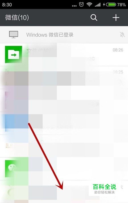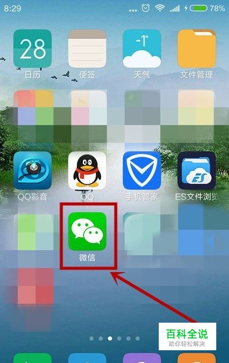 如图我们点击箭头所指的微信图标,打开微信软件。