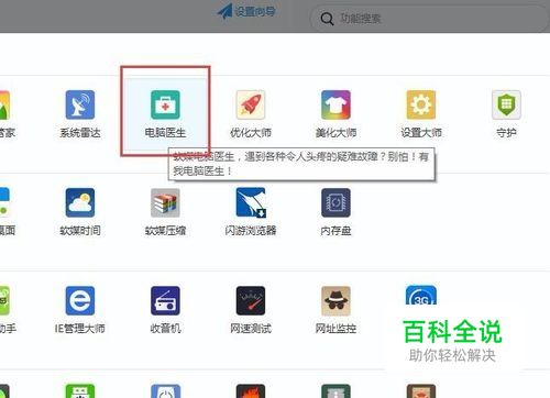接下来,系统桌面缓存文件即被自动执行完毕,非常方便哦,接下来,我们打开软件页面底端的“ 应用大全”选项,打开魔方软件中的全部应用,在应用列表中选择“ 电脑医生”选项。