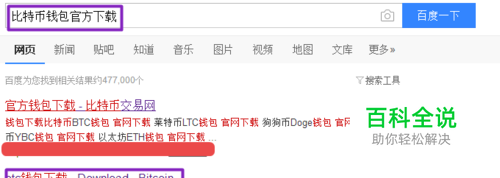 我们打开我们电脑上面的浏览器,然后在搜索中输入比特币钱包官方下载,然后按回车键,弹出的界面,我们点击图示中的网站;