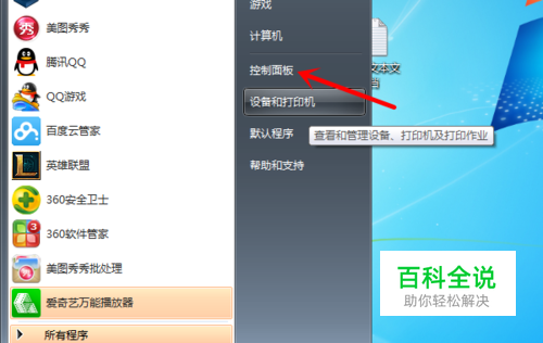方法1,按下电脑或者笔记本的开始键,调出对应的导航,然后选择【控制面板】选项进入后开始设置。