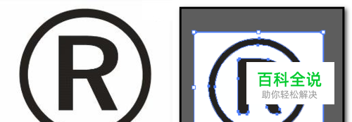 然后,再点击“图像描摹”右侧的“扩展”; 这时,图片转为矢量图,图中的黑色圈与R字显示出路径与锚点。本步骤第二张图所示。