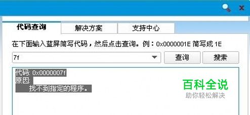①因为没有提示指定谁找不到指定的程序,所以很难确定方位。 ②除此之外,蓝屏查询器后面还有如何解决的综合方案和建议。