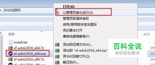 选中3dmax2016 64位的注册机,然后右键鼠标,选择“管理员身份运行” 如图