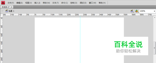 执行菜单中“视图|标尺”命令,添加一条垂直的辅助线。