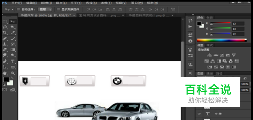 然后再次用钢笔工具勾画另外一个车的图标,然后再用自由变换调整到合适位置,然后点击2个图层之后,进行左对齐分布。分布到形状中的最左边位置即可。