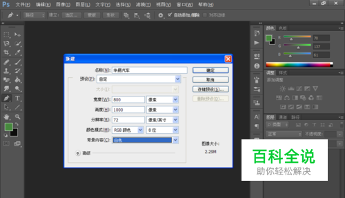 新建一个800X600像素的空白背景,颜色模式设置为RGB模式。RGB模式颜色是由红色,绿色,蓝色三种颜色相交构成,可以更好的显示网页中的色彩内容。