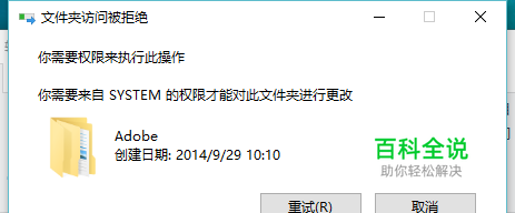 Win 10解决 你需要来自system的权限才能对此文件夹进行更改