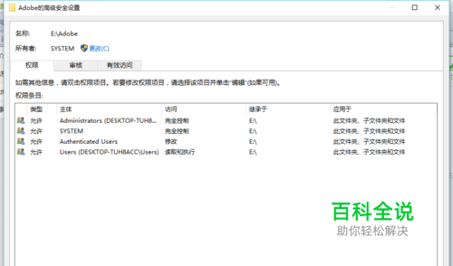 解决办法呢是。首先,右键该文件夹->属性->安全->高级,可以看到最上面的所有者是***,这里是system