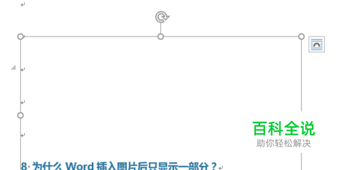 8.为什么 Word 中插入图片后只显示一部分? 你碰到过这样的情况吗?插入一张图片,只显示一小截,点一下图片又有图片边框,就像这样: