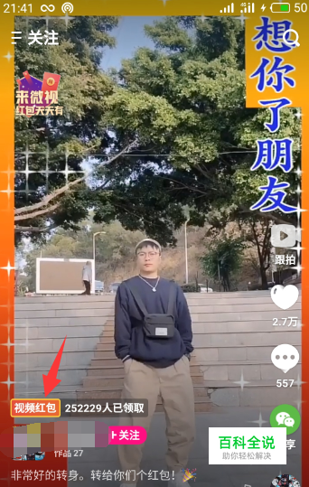 打开腾讯微视视频app之后,刷视频注意看到有 视频红包的样式的才会会有红包