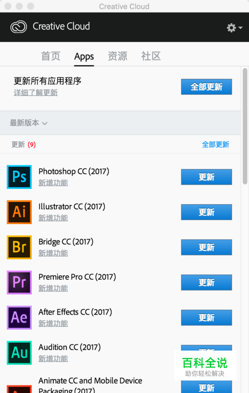 Adobe CC 2017引入了 Adobe Creative Cloud软件,用来统一管理Adobe所有的软件。 首先使用此软件需要注册Adobe ID并登陆,打开后的界面如图所示。 在Apps界面我们可以看到电脑上安装的所有Adobe软件。