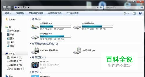 在使用光盘软件之前,我们来看下我的电脑,里面可移动存储设备那一栏的内容是空的。