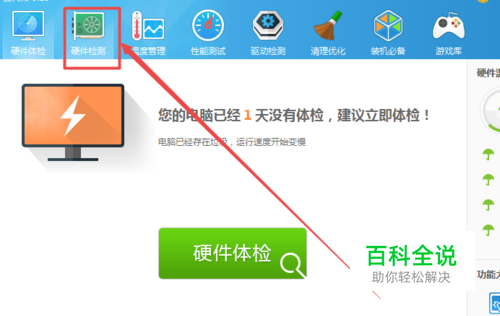 打开之后,点击上面的 硬件检测 菜单选项。