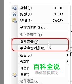 我们可以对背景音乐的音量进行编辑。在代表背景音乐的声音图标上点击右键,在弹出的快捷菜单上选择“编辑声音对象”