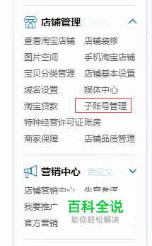 进入淘宝卖家中心,找到左侧导航的店铺管理-子账号管理,进入子账号管理后台。
