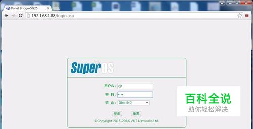 用标配的POE模块给网桥供电,POE模块上LAN口连接电脑,电脑本地连接IP地址设置成192.168.1.XX。打开一个浏览器(建议使用IE,谷歌,火狐),输入192.168.1.88(网桥出厂默认IP地址)即可到网桥的登陆界面,输入用户名和密码(vjjt,vjjt)登陆网桥配置界面,点击配置向导。