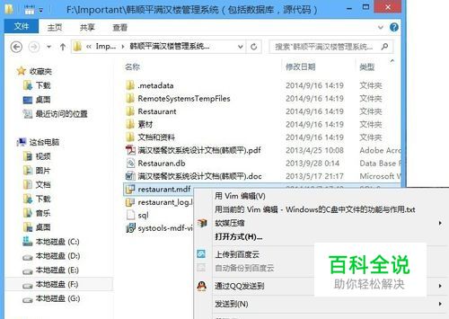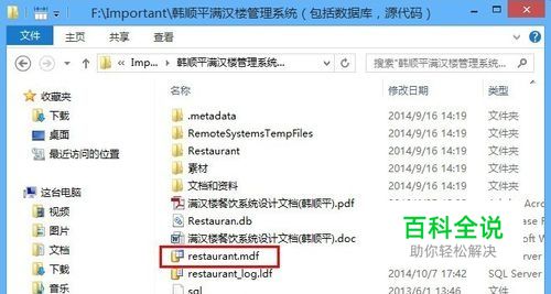 打开要附加的数据库文件所在的文件夹,即扩展名为mdf的文件所在的文件夹,如下图所示: