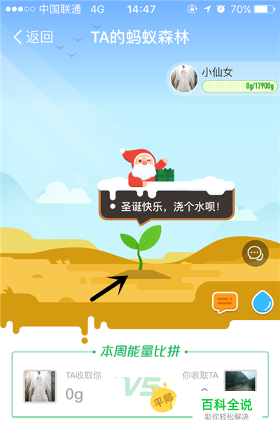 获得圣诞树的前提是要给好友浇水,做一些贡献,浇水的操作如下图中,点击小水滴之后,出现一个水壶就是浇水成功了。