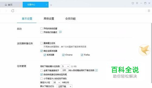 在设置中心中,设置打开浏览器新建任务。响应全部浏览器”。