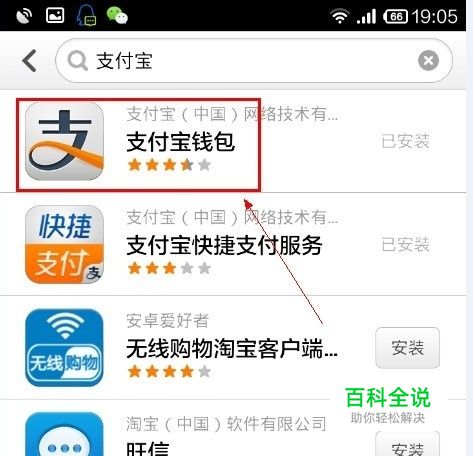 打开应用商店后,搜索“支付宝”和“快的打车”,点击安装。如下图,两个软件已安装。