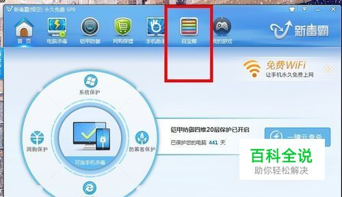 第二种方式就是 使用杀毒软件上带的插件来卸载程序。金山比较出名就用这个来演示吧。我们打开 百宝箱