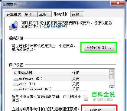 点击红框内的“创建”,键入还原点名称后点击“创建”,即可创建一还原点