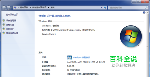 还原之前一定要有还原点,所以买了电脑装好系统后尽快设好还原点以作备用。首先右击“计算机”,点击“属性”,出现以下界面: