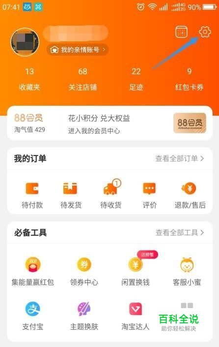 进入我的淘宝界面,点击右上角的齿轮状按钮,即设置按钮。