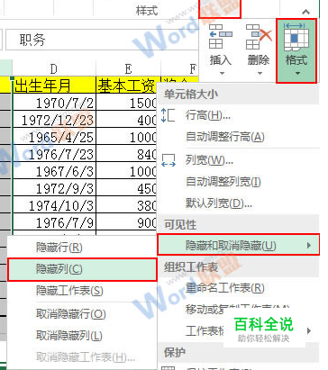 之后就会发现“部门”这一列被隐藏了。