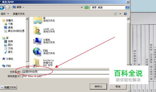 在弹出的窗口中选择保存位置,并写好文件的名字。