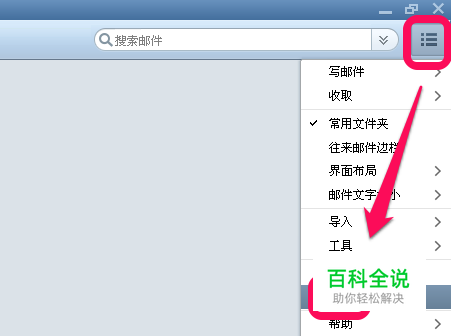 首先,我们打开foxmail客户端,点击右上角的菜单图标,下拉菜单,选择 设置,如图。