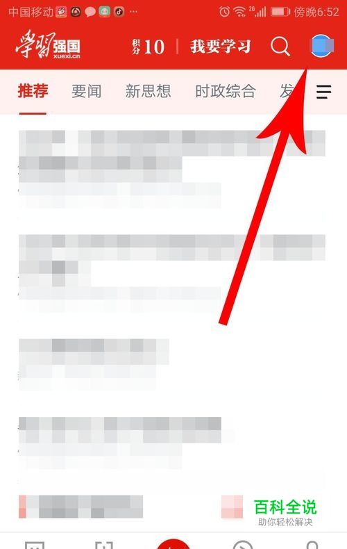 想要做学习强国app密码修改时,首先在“学习”页面点击右上角的蓝色图标,位置见下图
