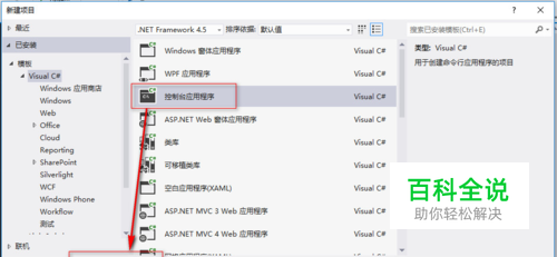 2.选择:控制台应用程序--》命名:字符串的截取Substring--》确定。