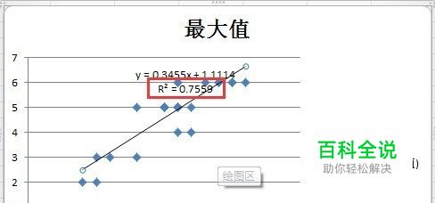 绘制图形。 ①目前我们只做2维的数据分析,只有1个自变量和1个因变量。选择2列数据,合计列和最大值列。技巧:当需要选择不相邻两列,可以先选1列,按ctrl键,再选另1列,放开ctrl键。 ②菜单插入→图形→散点图,确认。当然,折线图等也可以数据分析,但为了图面干净,推荐还是用散点图。