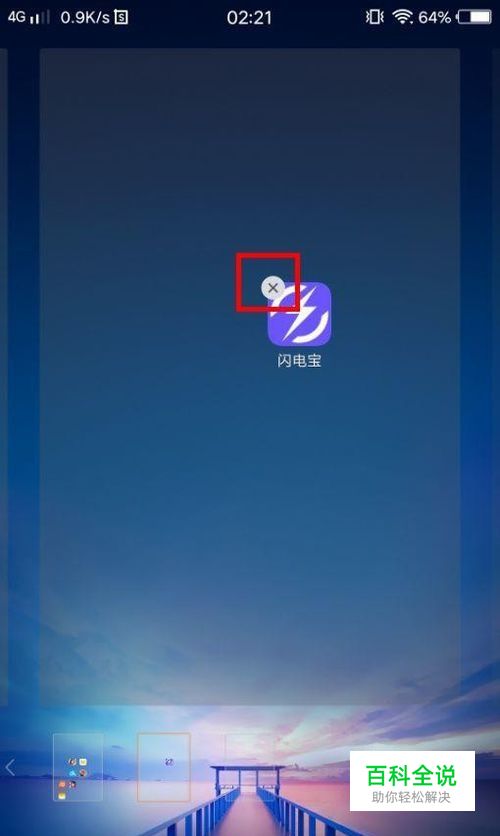 轻轻按住“闪电宝”快捷方式2-3秒,就会弹出删除卸载界面