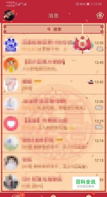 第一步可以看到qq使用了新年新装主题装扮,如下图所示: