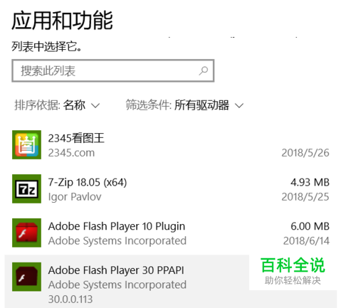 在卸载列表中,找到Flash,点击“卸载”按钮,卸载旧版本。