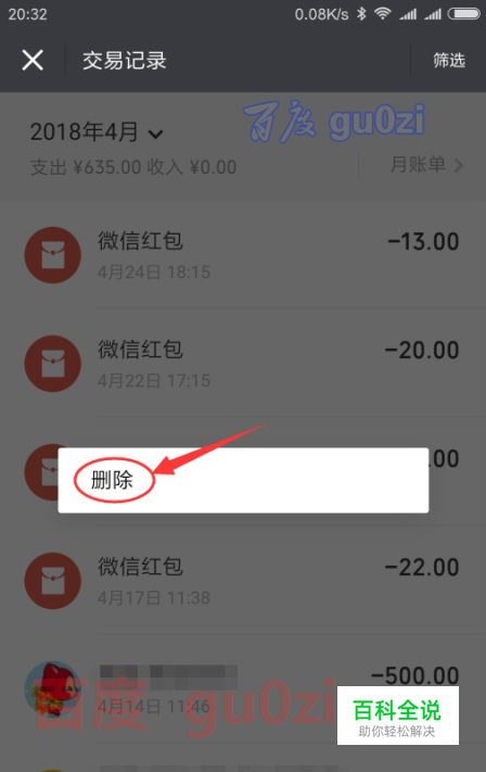 找到想要删除的记录,长按,在出现的弹窗上,点击删除,就可以删除掉零钱记录了,而且这是不能恢复的。 10:12 周五 18/4/27