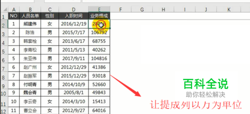 接下来我们回到excel界面中,你就会看到E列已经转化为以万为单位了,如下图所示