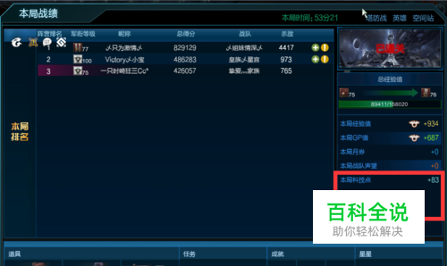 最后通关成功,右下角就会显示科技点的数量了,小编由于没有认真好好的打怪也获得83的科技点了,想要刷的更多科技点,自己有能力的话,可以自己一个人打,时间越长怪积分高,就可以获得大量的科技点。