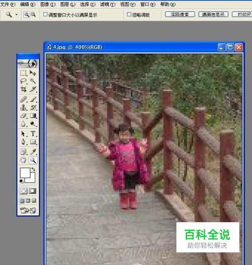 小编取一张低像素的图片为例,首先用PS打开并放大图片。
